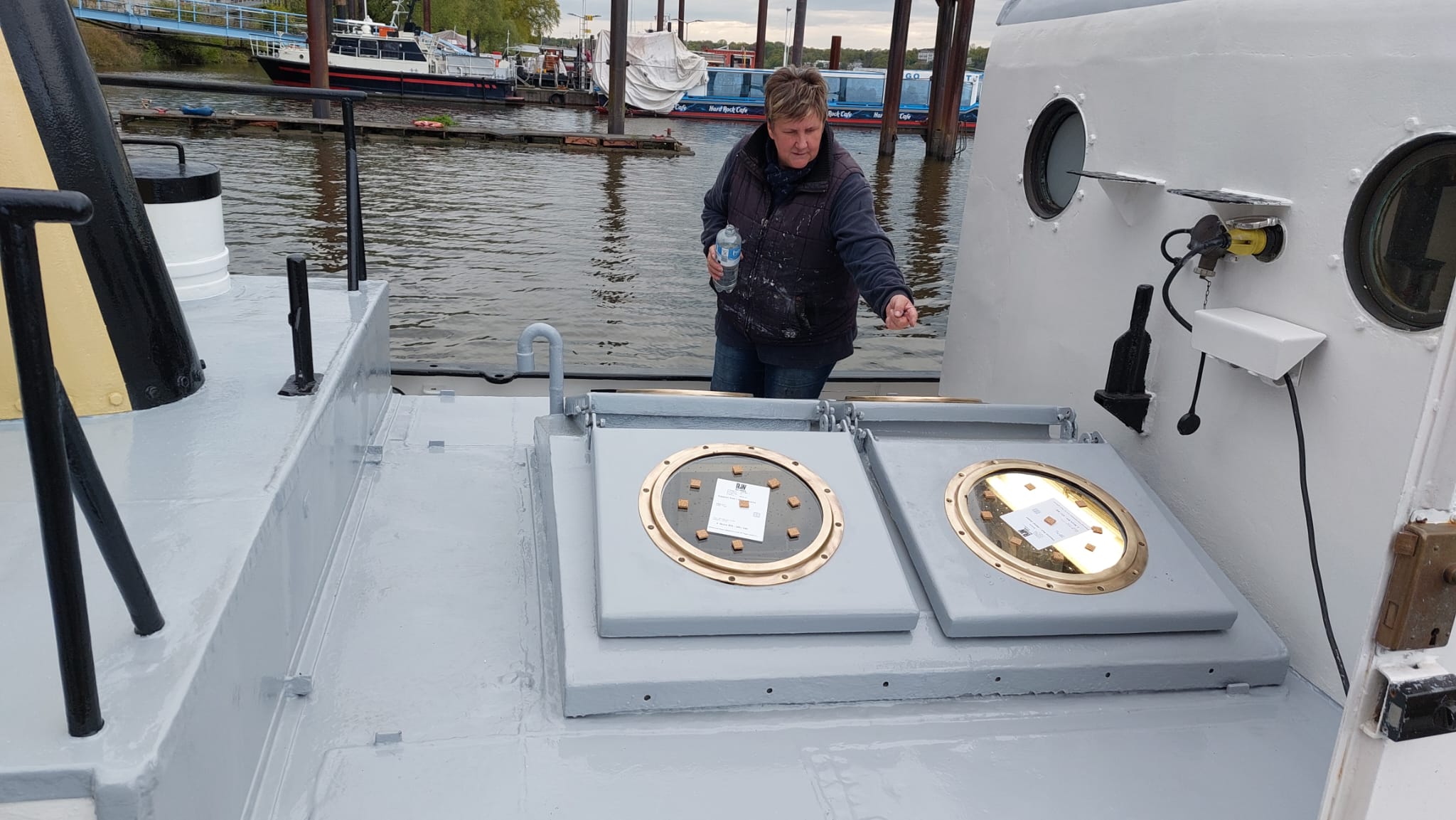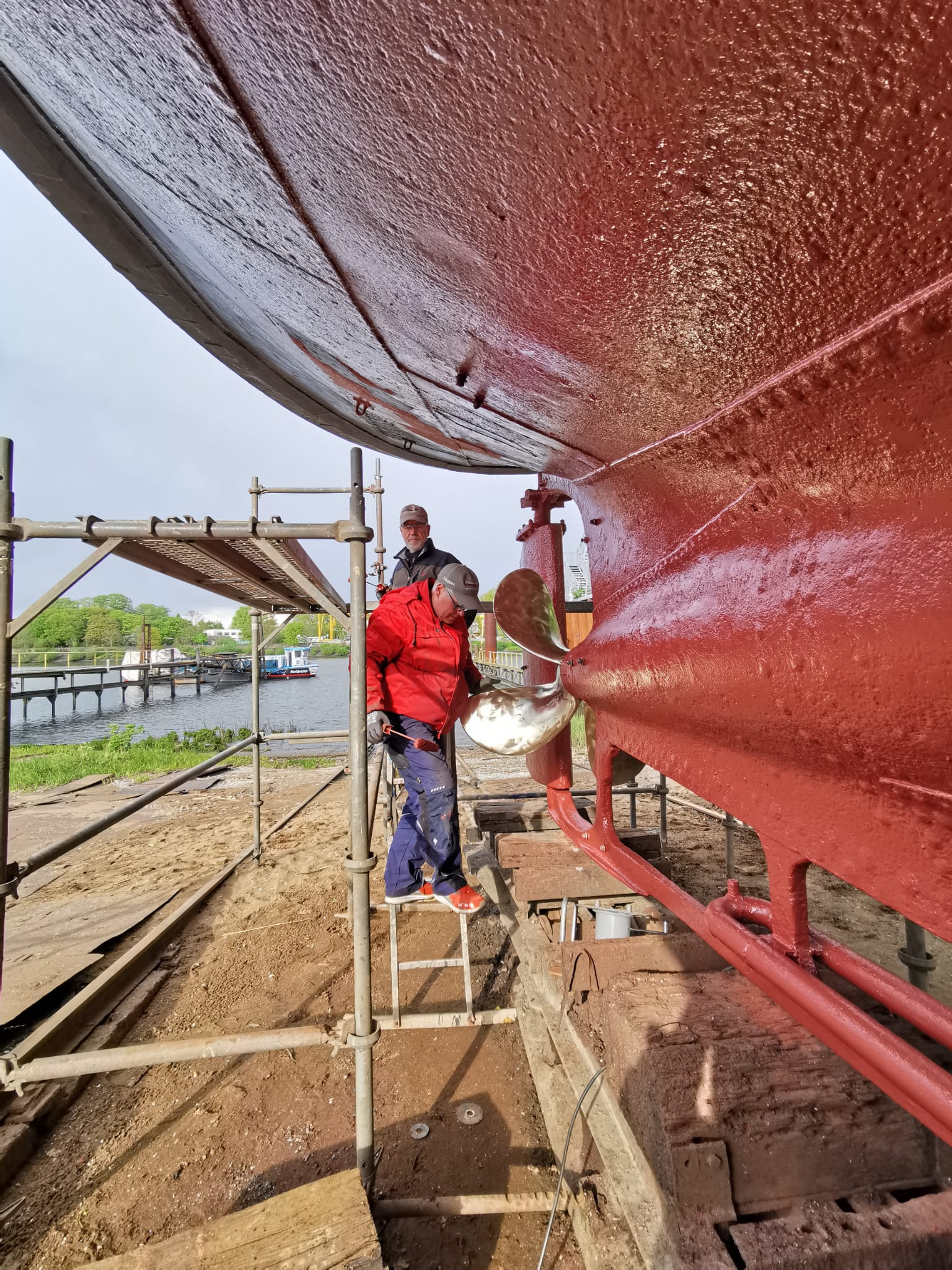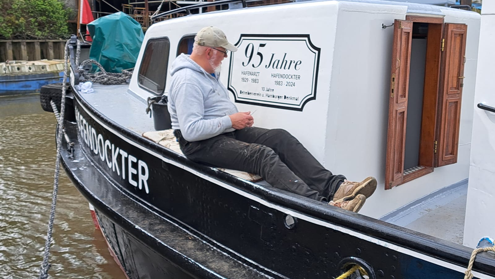 Fast pünktlich wurde der HAFENDOCKTER aus dem Wasser geslippt. Seine Crew stand mit Schleifmaschinen, Farbe und Pinseln bereit. Es wurde ordentlich ein Schlag reingehauen. Nun glänzt er wieder! Pünktlich zum Hafengeburtstag….